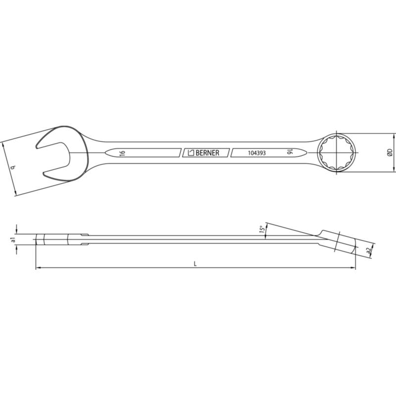 Prema DIN-u 3113, okasti ključ ima 15° nagiba, dobar zahvat, visoka čvrstoća, kratka izvedba.